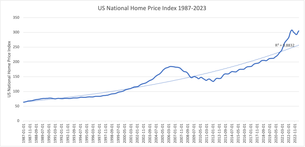 Similar to the 1980s, the Fed is raising borrowing rates to dampen overvaluation in the housing market, which is the fault for today’s housing affordability crisis. Today’s elevated housing price index implies that housing prices (as of May 2023) need to come down roughly 17% to sell. The average person is generally unwilling to pay a premium for housing anymore. For those renting or looking to buy a home, relief may be slow, but it’s on its way.